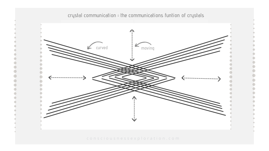 It is notable that the vision I have been taken into – relative to how communication/data is coming to me through the crystal – is so very similar to this geometry which is more specifically of RECALL. In the place of a single conical, or vortex-like structure intersecting another are multiple interlacing V shaped structures, at the center of which is the same diamond shaped window through which the transmissions -waves- are being sent.