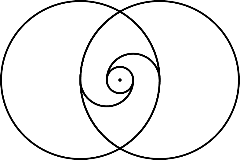 Let’s go back now to the data processing speeds, – the other readable frequency formats in which the signals are sent and received. Rather than concentric, spheres within spheres, scenes within scenes, imagine now a circle,—one circle rolling halfway out of another circle.