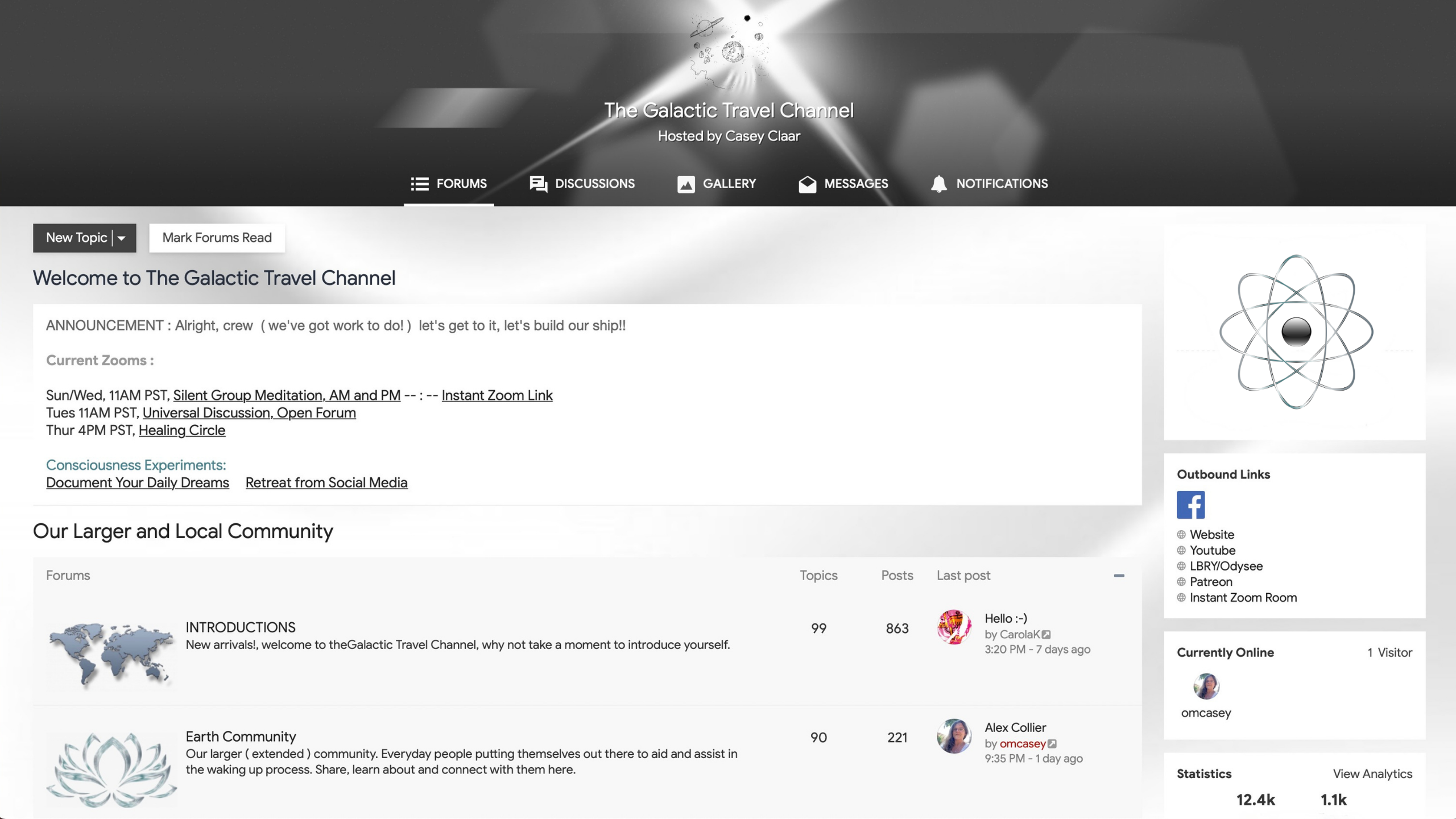 The Community Forum is our campus, established in 2008 the activity here has been ongoing. It is where we meet each day, check in with one another and dive into the work. We keep logs, engage in consciousness experiments, group dream journal, discuss findings, share personal experience, all while moving through unique awakening processes.